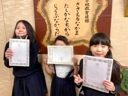 全文暗唱の達成、すぐれた図工の作品づくりで表彰を行いました。