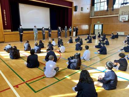 続いて、新入生との対面式を行いました。入学してきたばかりで、緊張感いっぱいの1年生でしたが、拍手とお迎えの言葉をもらって、うれしそうでした。