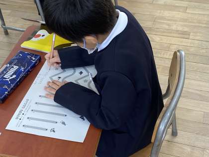 1年生は、えんぴつの持ち方、線の引き方から始めます。