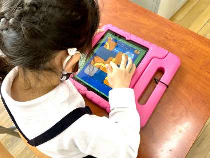 はじめの頃は、ひらがなの書き順をなぞる程度でしたが、今では、時計やローマ字といった内容をやっています。