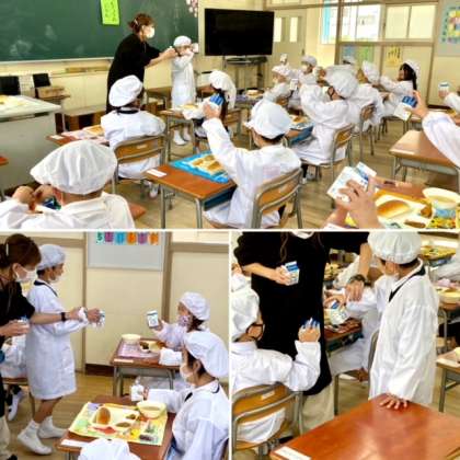 1年生は、お誕生日を迎えたお友達に、牛乳で乾杯をしました。