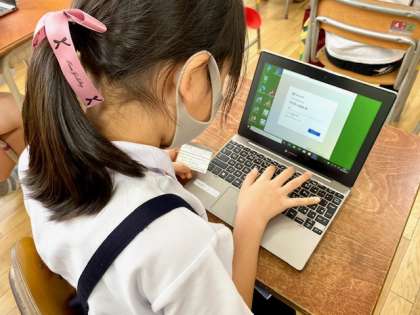 4年生は、オンラインで授業を行っています。先生が示した問題に応答することを練習しています。