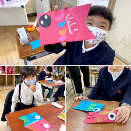 2年生のこいのぼり作りは、1年生とは一味ちがいます。じょうずにマイこいのぼりを作っていました。