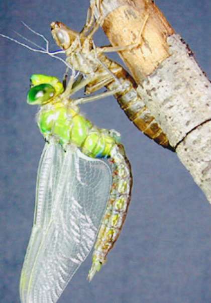 昨日プールから救出したヤゴのうち4匹が、今日の朝に早速トンボになり、飛び立って行きました。