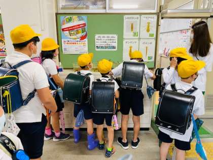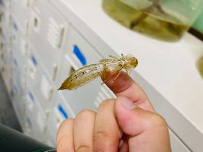 子どもたちは、登校して早速、ヤゴの抜け殻を見つけ、大喜びをしていました。