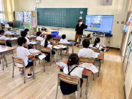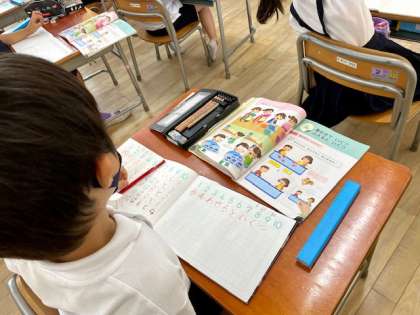 1年生は、たし算の学習にはいりました。ブロックをつかいながら、「あわせていくつ?」を学んでいます。
