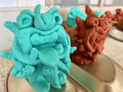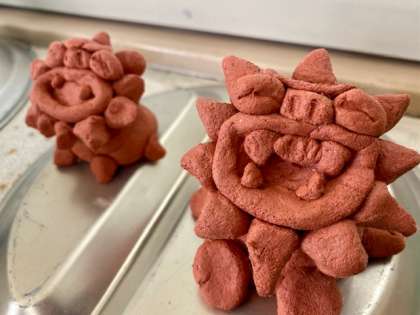 5年生のつくったシーサーです。一人ひとりの個性が輝いています。