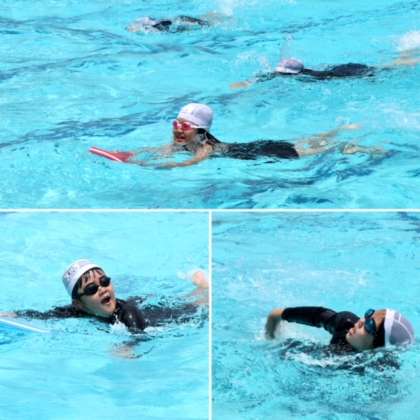 距離を保ちながら、密を避ける活動ですが、やっぱりプールは楽しいです。