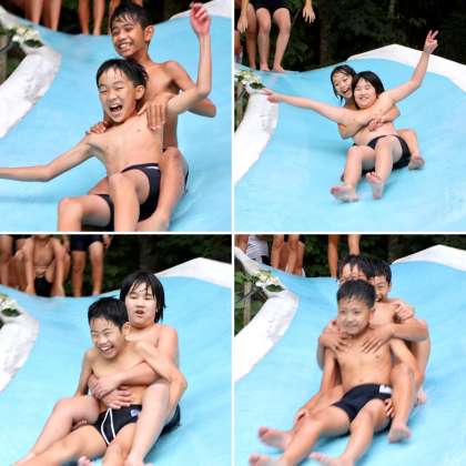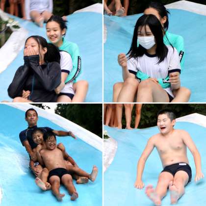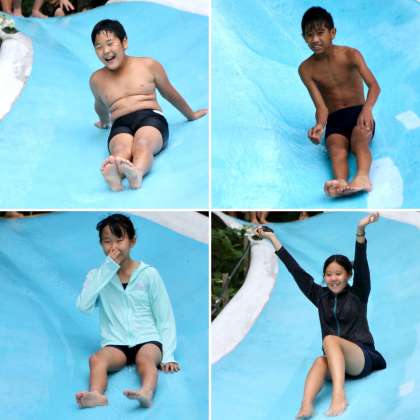 これも楽しみにしていたスライダー。水は冷たいですが、みんな平気です。