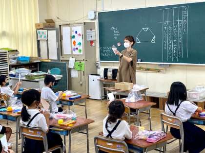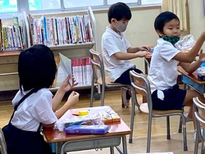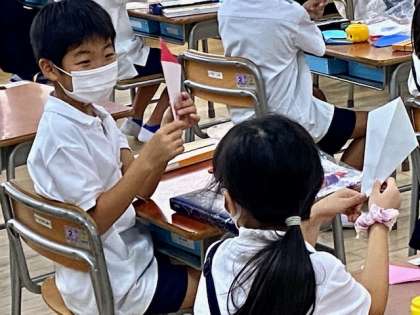 1年生が、楽しそうにおりがみをしていました。 何ができるのでしょうか。