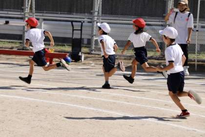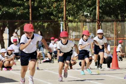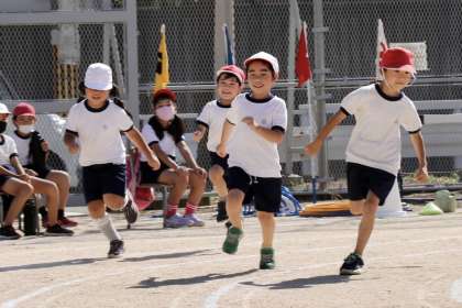 1・2年の徒競走。カーブをじょうずに回っていました。
