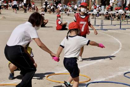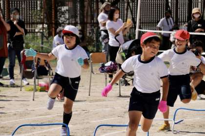 3・4年障がい物走。1・2年と同じようにみえて、難易度が上がっています。