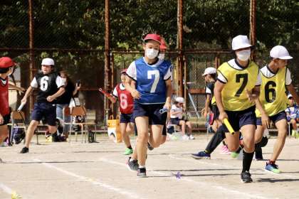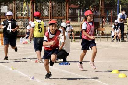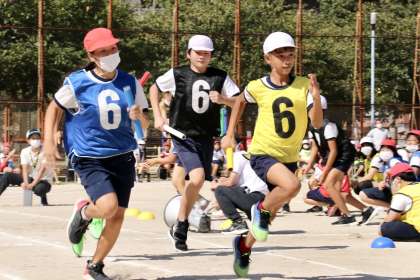 5・6年リレー走。6年生にとっては、これが最後の全力疾走の子もいます。