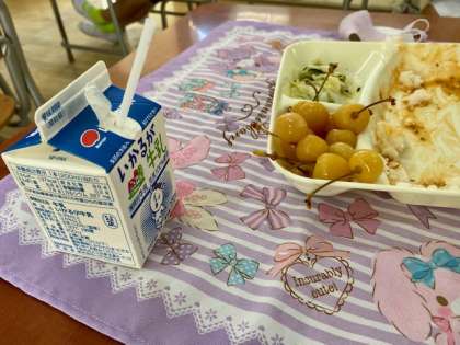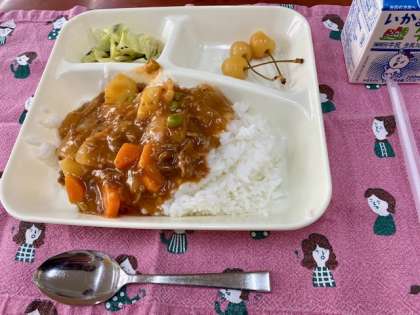 今日の給食は、ハヤシライス、キャベツのひじきドレッシング、さくらんぼでした。運動会明けで、疲れているかと思いましたが、みんな元気でした。食欲もあって、たくさん食べていました。
