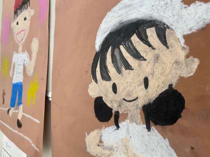 のびやかで、楽しさが画用紙からはみ出してきそうな1年生の絵です。