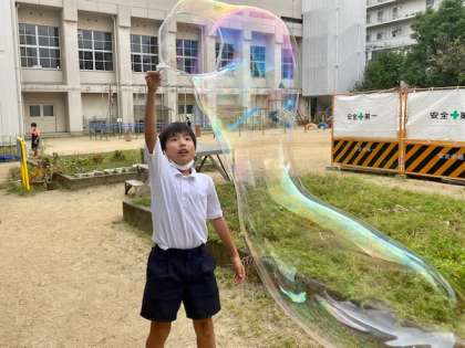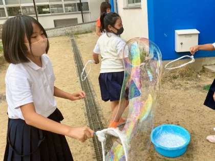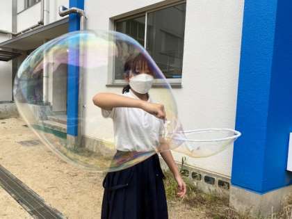 手作りクラブが、大きなシャボン玉づくりに挑戦しました。