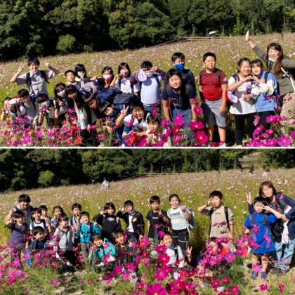 3・4年生が万博記念公園に行きました。待ちに待った遠足は、とてもいい天気でした。すがすがしい秋では、紅葉がはじまり、コスモスが一面にゆれていました。