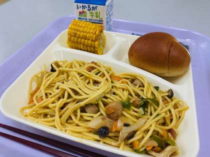 今日は、和風スパゲッティ 公開日 2021/11/11 更新日 2021/11/11 お知らせ 今日の給食は、ウインナーときのこの和風スパゲッティ、焼きとうもろこし、固形チーズ、2分の1黒糖パンでした。 いいね(0)