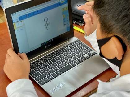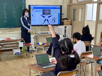 3年生が、タブレットを使って、ピクトグラムを作る学習をしました。人の動作を簡略化してスポーツなどを表現するものですが、よくがんばっていました。
