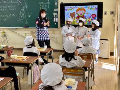今日の給食は、豚肉のケチャップソテー、コーンスープ、焼きプリンでした。