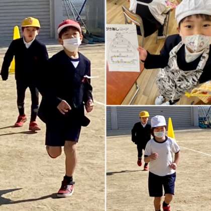 冬場の体力づくりのために、ランニングやなわとびに取り組んでいます。休憩時間には、いろいろな学年が走っています。駆け足カードも順調に進んで、うれしそうです。