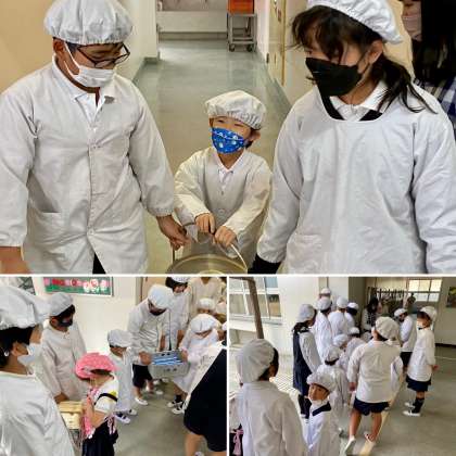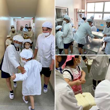 先週は1年生の給食を6年生が運んでいました。