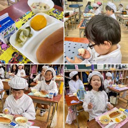今日の給食は、コーンクリームシチュー、キャベツときゅうりのサラダ、河内晩柑(かわちばんかん)でした。