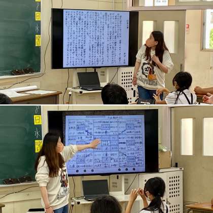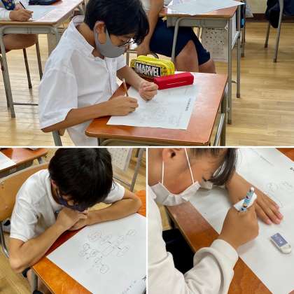 サッカーの本田選手や野球の大谷選手が、将来の夢をもち、それに向かって努力が重ねたことを知り、自分たちも、なりたい自分の将来像を考えました。