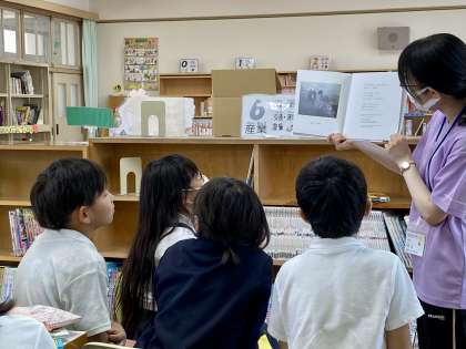 図書館司書の岡本先生に、原爆で消えた家族の写真を見せていただきながら、お話を聞きました。