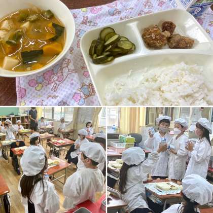 今日は、竜田揚げ 公開日 2022/07/05 更新日 2022/07/05 お知らせ 今日の給食は、豚肉の竜田揚げ、みそ汁、きゅうりの甘酢づけでした。揚げ物好きにはたまらない献立でした。 いいね(0)