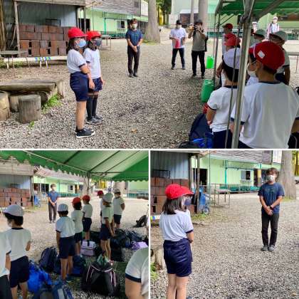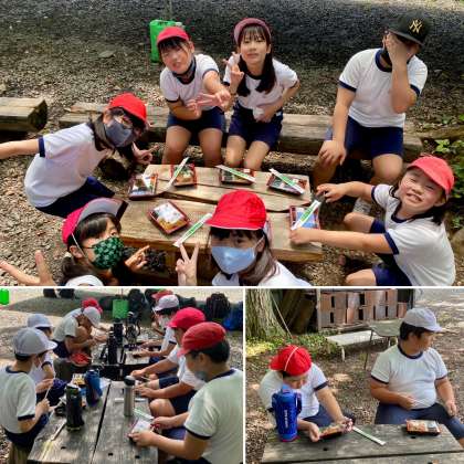 あさひロッジに到着しました。ハチ高原は例年になく暑いです。開舎式を行い、お弁当タイムにしています。