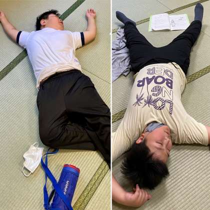 さすがに疲れたみたいで、部屋に戻るなりゴロゴロしています。それでもすぐに回復して、トランプに参加しています。