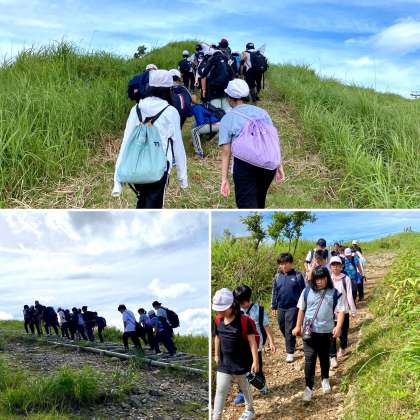 鉢伏山登山がスタートしました。風が強く吹いて気持ちいいのですが、尾根歩きでは帽子が飛ばされそうになりました。