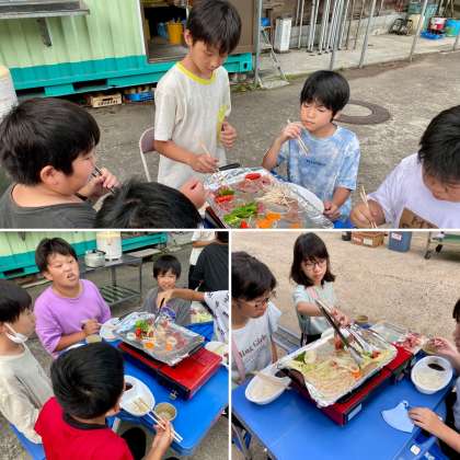 お楽しみのバーベキューです。涼しい夕方に外で食べるのは本当においしいです。