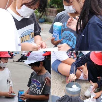 シャーベット作り。説明通りに容器に入れて、ケースを転がしてシャーベットにします。