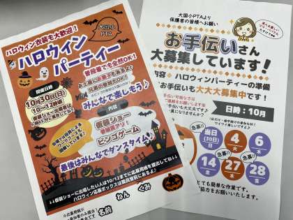 PTAのみなさんが集まって、ハロウィンパーティーの準備を進めてくださっています。
