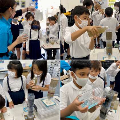 4年生が柴島浄水場に行きました。淀川の水がどのようにして飲み水になるのかを、見学と実験で確かめました。