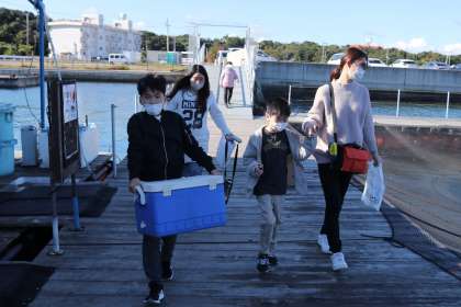 楽しい思い出をいっぱい詰め込んで、釣り場を後にして、昼食場所のとれとれ市場に移動しました。