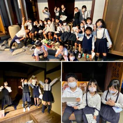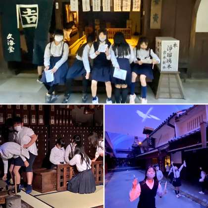 江戸時代にタイムスリップした子どもたちは、見るもの全てが楽しさいっぱいでした。床の古地図に大国町や勘助町を見つけて驚いていました。