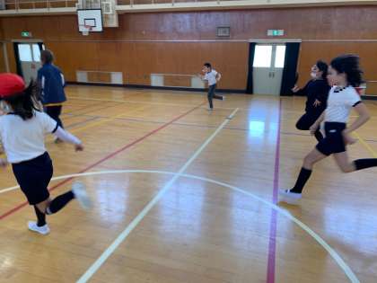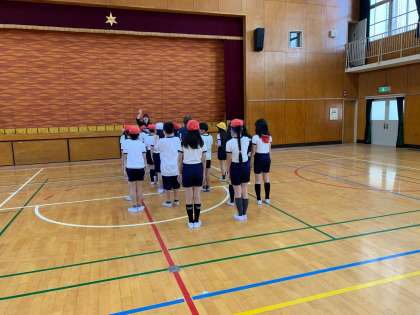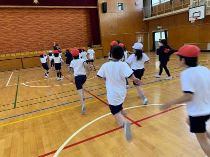 バラバラに分かれます。そして、先生の合図で集合し、整列します。たいへんよくできました。