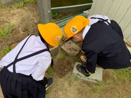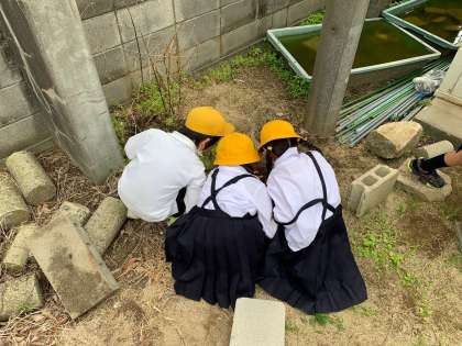 1年生が、また何か見つけました。ビオトープの周りは、たくさんの生き物がいます。