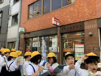 大国町駅・今宮駅・交番や郵便局などの施設を中心に、大通り沿いの建物のようすなどを調べながらたんけんしました。