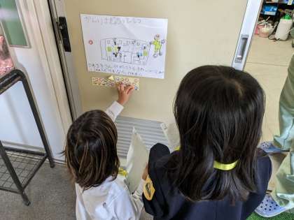 各部屋の案内も、1年生に分かりやすいように2年生が作りました。