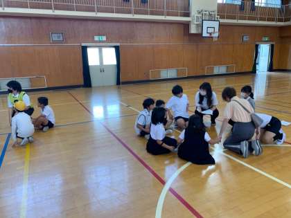 円になって顔合わせをするのですが、6年生が低学年にもわかるように