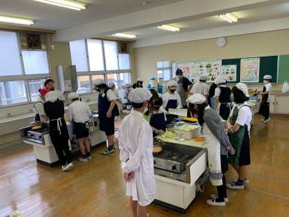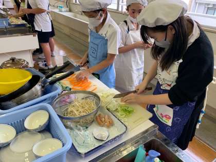 調理実習2 野菜を切るときは、猫の手にして切ります。