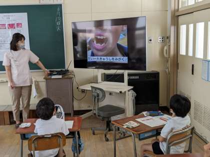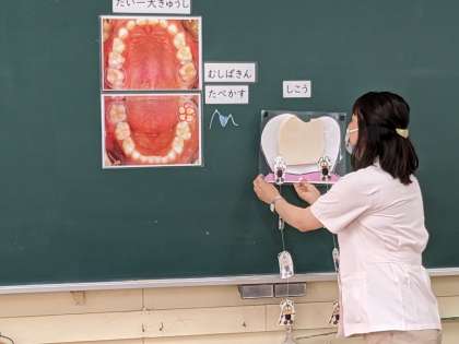 歯科衛生士の先生に来ていただき、はみがき指導を行いました。