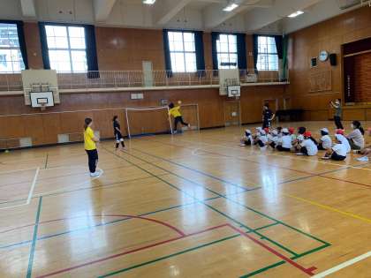大阪ラヴィッツの選手やコーチの方に来ていただき、トップアスリート小学校ふれあい事業を行いました。