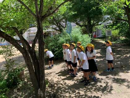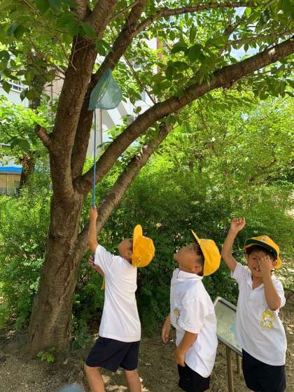 ビオトープでの虫とりにむちゅうです。