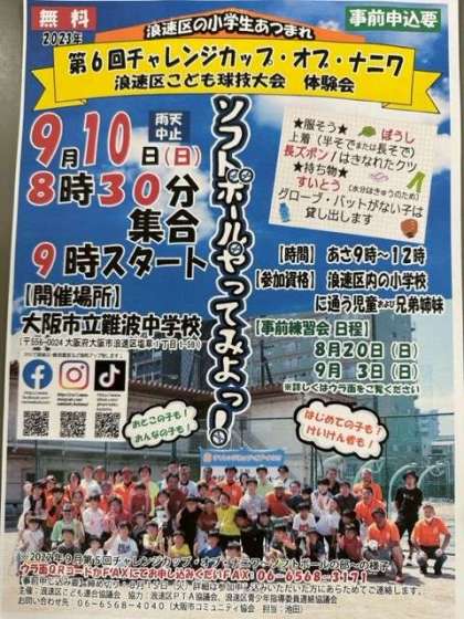 浪速区青少年指導員連絡協議会より、地域イベントの案内がきております。参加を希望される方は案内をお読みのうえ、ご参加ください。