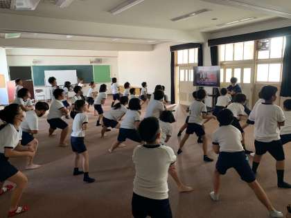5・6年生の運動会の練習もスタートしました。まだまだ暑いので、多目的室で踊りを覚えているところです。